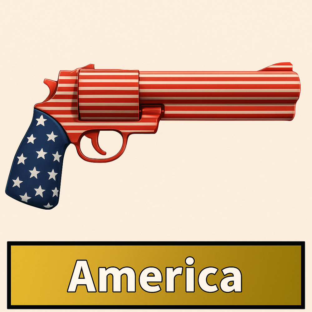 سلاح America هو مسدس رقمي نادر في لعبة Murder Mystery 2، يتميز بتصميم مستوحى من العلم الأمريكي، حيث يجمع بين الألوان الأحمر، الأبيض، والأزرق، مع نجوم بيضاء تزين المقبض الأزرق، مما يمنحه مظهرًا فريدًا وجذابًا.